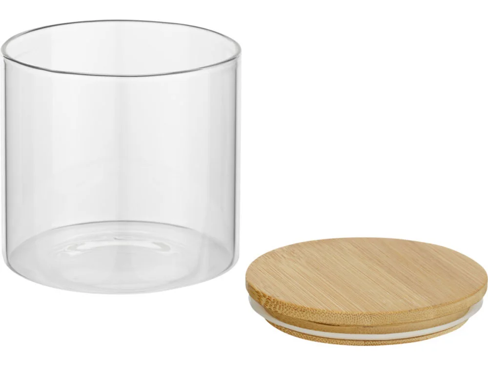 Небольшой пищевой контейнер из стекла с бамбуковой крышкой. Он сочетает в себе преимущества стекла, которое является безопасным и прочным материалом, с возобновляемыми свойствами бамбука. Стеклянный контейнер (без крышки) можно использовать в микроволновой печи и посудомоечной машине. Упакован в коробку из крафт-бумаги вторичной переработки. Емкость: 320 мл.
